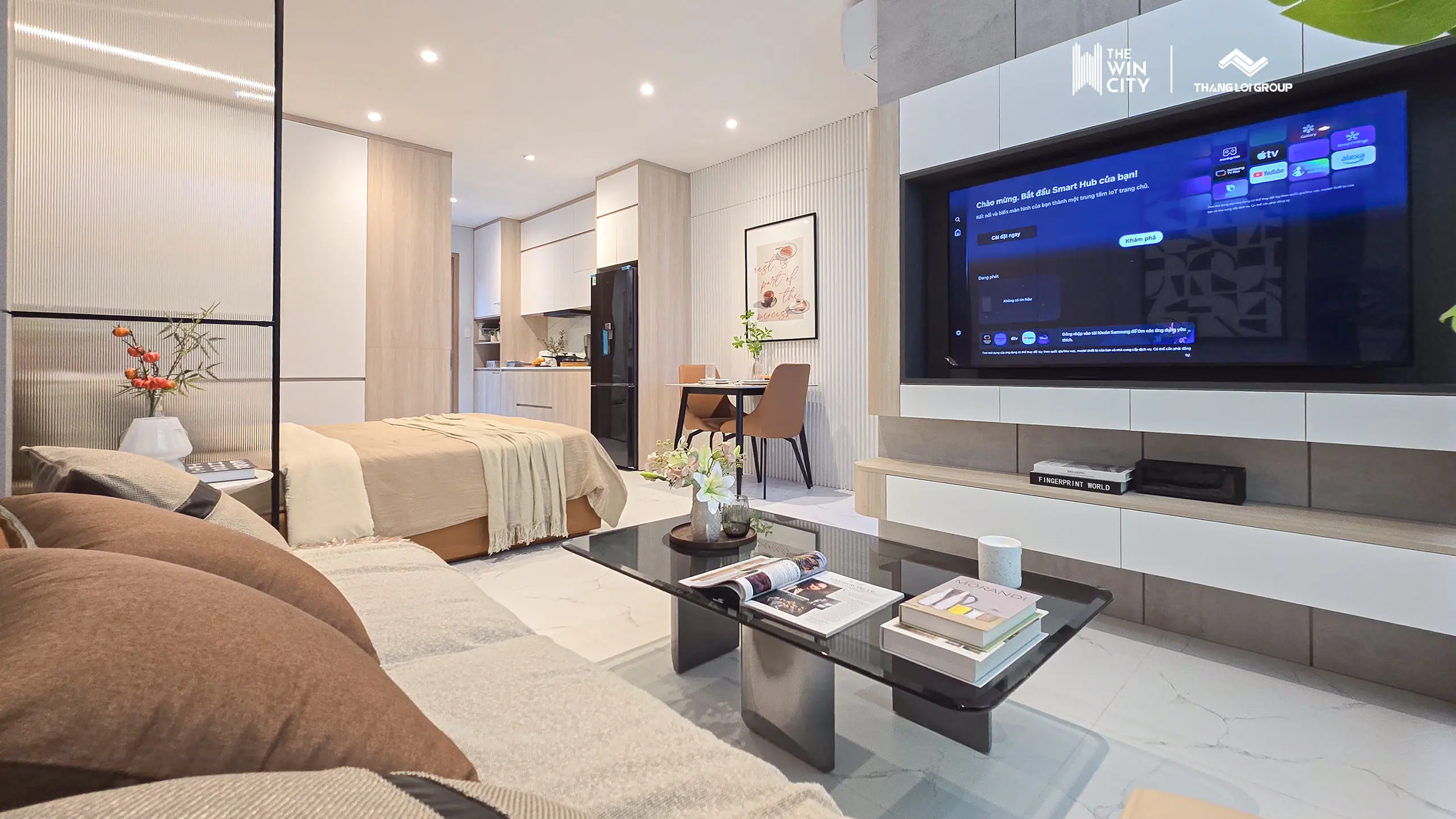 Thiết kế căn hộ Studio The Win City với 1 phòng ngủ 1 nhà sinh. Đáp ứng đầy đủ công năng cho gia đình trẻ, chuyên gia sống một mình.